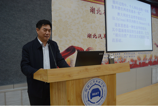 “生态是一个现代观念,那么在古代的武当山,人们有没有生态保护的意识?人们有没有建设生态保护工程呢?”4月12日晚,湖北省武当文化研究会会长、校党委副书记杨立志受邀做客“明德论坛”第八讲,在6113报告厅作了题为“人与自然的和谐——武当山古代生态保护工程考察”的报告,吸引众多醉心武当文化的师生前往聆听。讲座由经济管理学院分党委书记肖俊涛主持。