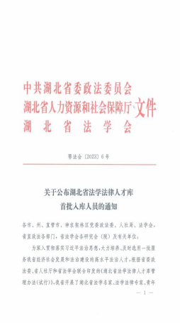 本网讯(文/图 郑实)近日,中共湖北省委政法委员会、湖北省人力资源和社会保障厅、湖北省法学会联合印发《关于公布湖北省法学法律人才库首批入库人员通知》,我校beat365正版唯一官网安军博士入选湖北省青年法学法律人才,成为首批入库人员。