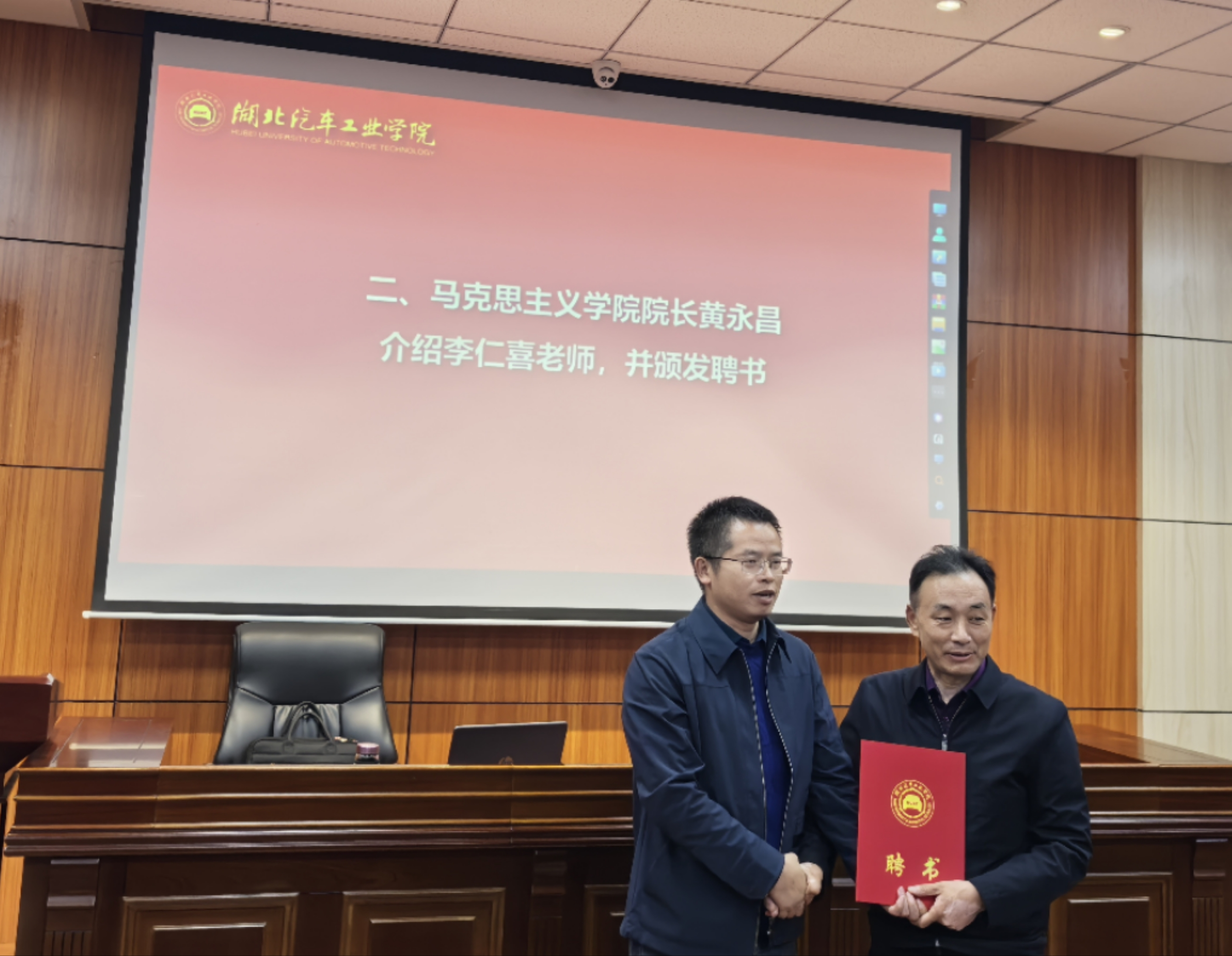 讲座前,成继平宣读了“beat365正版唯一官网行走的大思政课活动方案”。李仁喜受聘为校外指导老师,黄永昌为李仁喜颁发聘书。