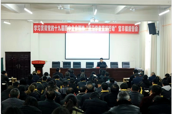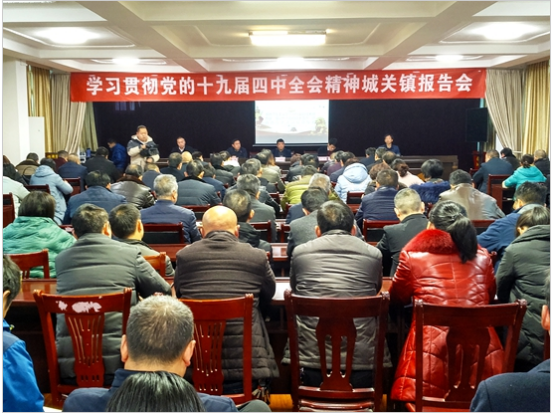 在宝丰镇,中国地质大学(武汉)beat365正版唯一官网汪宗田副教授从中国共产党的发展历程入手,认真分析十九届四中全会召开的时代背景,生动地阐述了十九届四中全会的精神和重要意义,详细解读了习近平新时代中国特色社会主义思想的精髓要义,并就如何贯彻落实好十九届四中全会精神,为全体镇干部、镇直单位全体人员、竹山二中部分学生共计150余人上了一堂生动的理论课。