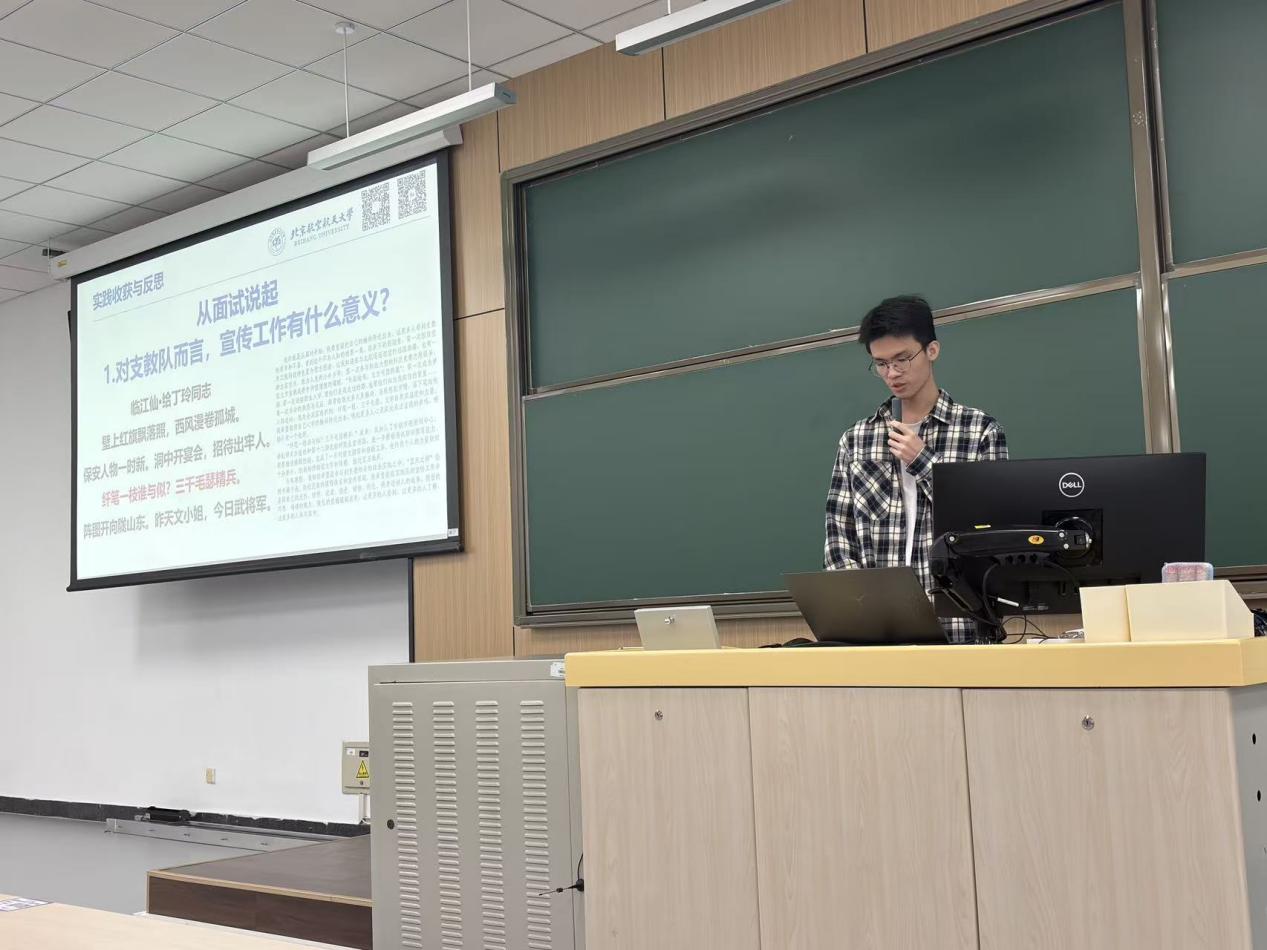 陈铭良学长以实践活动与宣传工作为主题,结合担任蓝天之梯支教队副队长、太阳集团城娱8722官网本科学生会副主席的经历,分享他从三期支教实践与所负责的宣传工作中得到的成长与收获。为了突破支教队宣传形式单一的困境,他带领宣传组同学打造了全方位多维度宣传矩阵,遵循“主线串联、多线并举”的设计理念,使蓝天之梯支教队在社会层面取得了更为广泛的认可。在宣传工作中,他以情动人,唤起心灵共鸣;在实践生活中,他开放视野,发掘人性光辉。最后,陈铭良学长还鼓励同学们放下焦虑,“勇敢尝试、大胆探索,做一些自己喜欢的事,也做一些自己不那么喜欢但是良药苦口的事”。