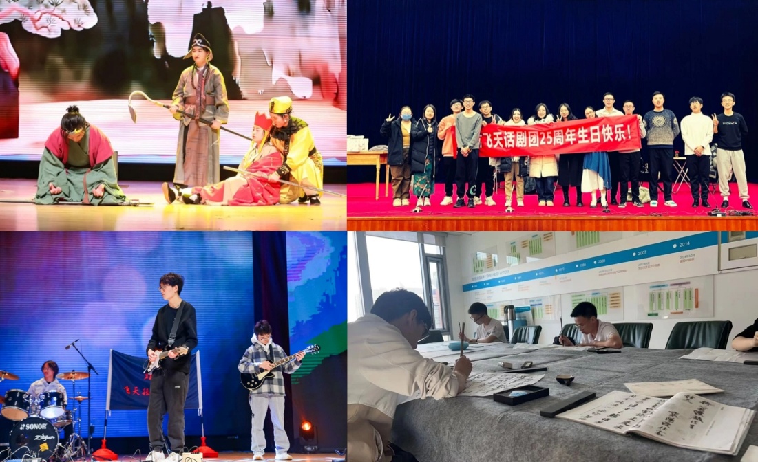 飞天艺术团还积极参与校内重大文化活动。参与北航原创音乐剧《罗阳》首轮演出,缅怀“航空报国英模”,传递爱岗敬业、为国奉献的精神力量;在“航向未来”毕业晚会上献上合唱表演,为毕业生带去“空天报国、逐梦远航”的温馨祝福;成功举办“飞天话剧团二十五周年短剧专场”,以《科研路上的青春》等原创剧目展现新时代青年的理想与担当,成为思政教育与美育融合的生动实践。