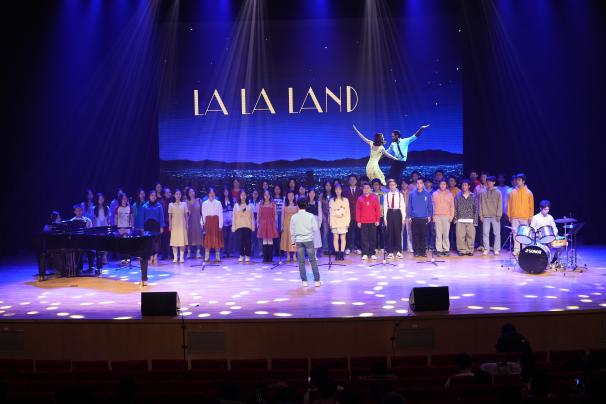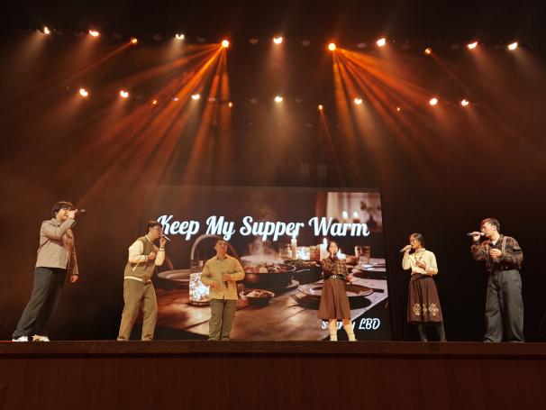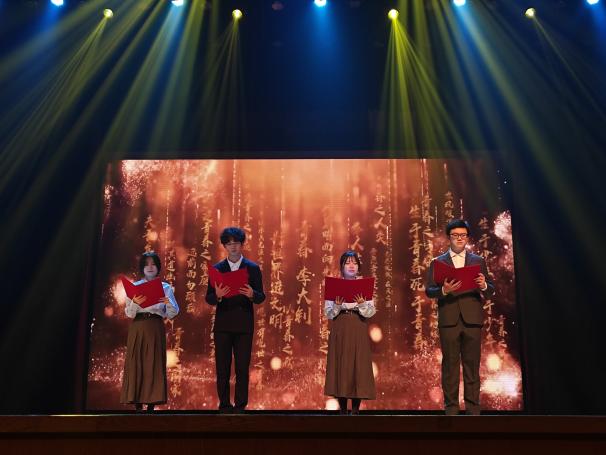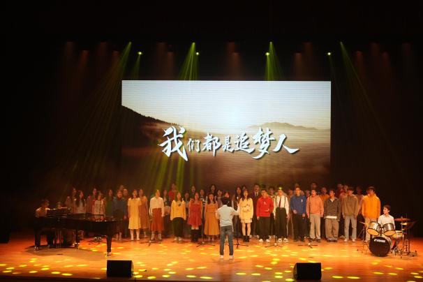 进入“同心驭远・共赴新程”篇章,民乐《锦绣欢情》、歌曲串烧《第J象限》、诗朗诵《青春》等节目依次呈现,传递青春热情。合唱《La La Land》选段与《我们都是追梦人》激励师生勇敢前行。晚会最后在全体师生共同唱响《相亲相爱一家人》的温馨氛围中画上了圆满的句点。
