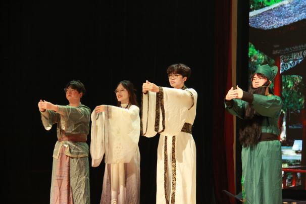在“卓尔风华・艺彩纷呈”篇章中,喜剧《三顾茅庐》、阿卡贝拉《Keep My Supper Warm》、歌曲《等你下课》《卡布叻船长》以及双人舞《We Flash》等节目,展现了学子们多样的艺术才华。