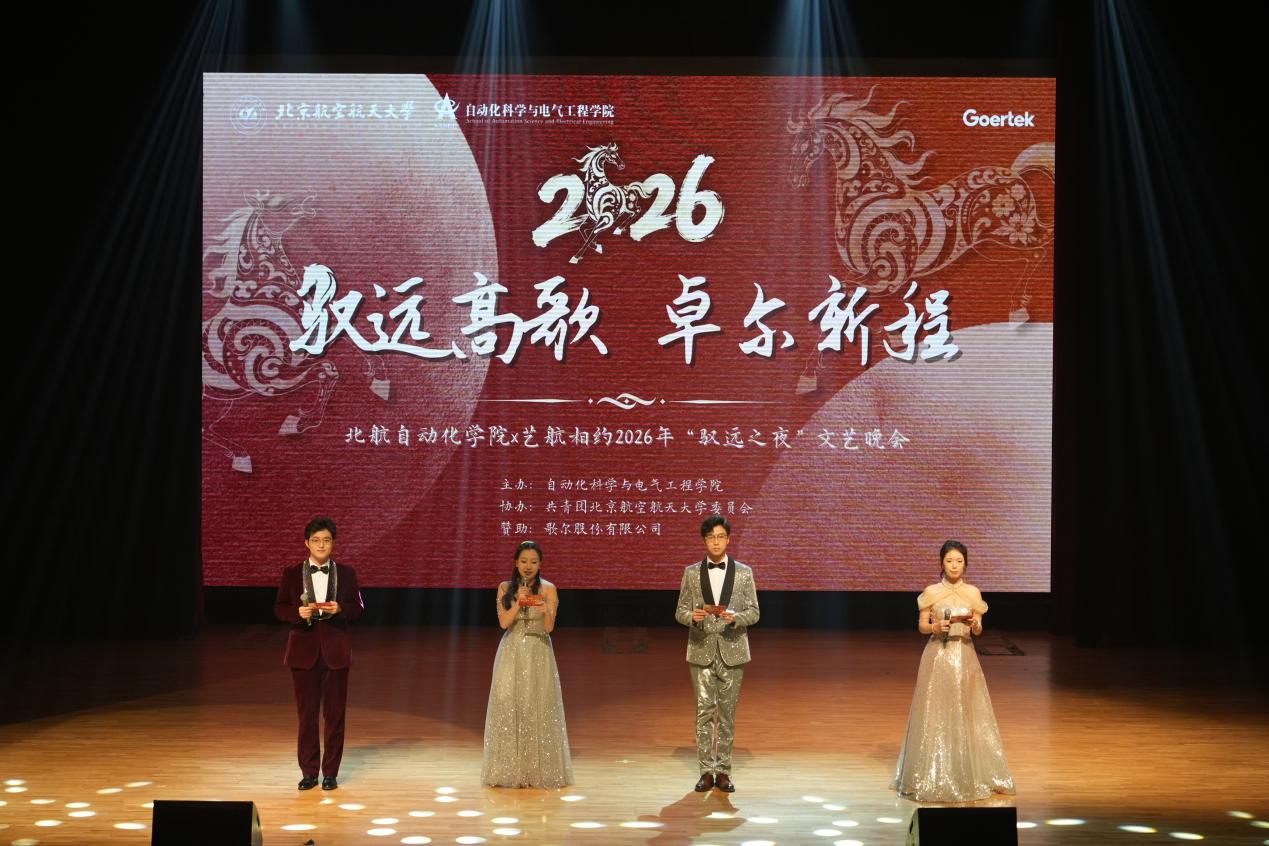 (通讯员 敖玉翔 鲁思为)2025年12月28日晚,太阳集团城娱8722官网太阳集团城娱8722官网在晨兴音乐厅举办“驭远高歌 卓尔新程——北航太阳集团城娱8722官网×艺航相约2026年‘驭远之夜’文艺晚会”。师生欢聚一堂,通过三个篇章、十七个精彩节目,共叙青春、表彰先进、展望新年。